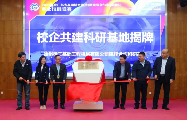 與會領導為學院與徐州徐工基礎工程機械有限公司校企共建科研基地揭牌。