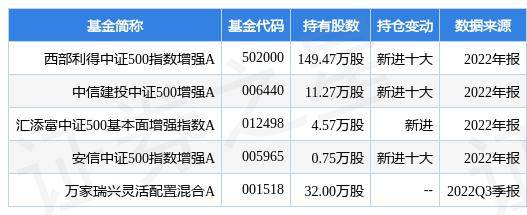 其中持有數量最多的基金為西部利得中證 500 指數增強 A,目前規(guī)模為 18.19 億元,最新凈值 1.6131(3 月 10 日),較上一交易日下跌 1.23%,近一年下跌 2.77%。該基金現(xiàn)任基金經理為盛豐衍 陳元驊。以上內容由證券之星根據公開信息整理,與本站立場無關。證券之星力求但不保證該信息(包括但不限于文字、視頻、音頻、數據及圖表)全部或者部分內容的的準確性、完整性、有效性、及時性等,如存在問題請聯(lián)系我們。本文為數據整理,不對您構成任何投資建議,投資有風險,請謹慎決策。