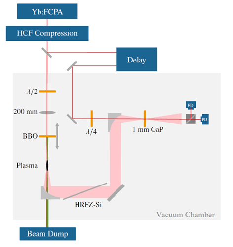 基于激光的強場太赫茲(THz)脈沖的是一種非常有用的工具,可以直接激發(fā)特定低頻模式以更好地理解各種材料的結構和電子動力學,比如可用于太赫茲角分辨光發(fā)射能譜和THz納米成像等。這些應用需要重復頻率在100kHz以上的高平均功率THz脈沖光源。2020年,美國加速器國家實驗室[1]和德國耶拿的科學家[2]分別演示了基于光整流和雙色場激光打氣體靶的兩種技術路線。