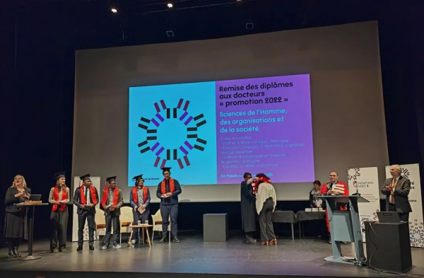 榮譽(yù)博士授予儀式結(jié)束后,在雷恩大學(xué)校長(zhǎng)David Allis邀請(qǐng)下,阮雙琛還參加了雷恩大學(xué)博士學(xué)位授予儀式,為該校博士畢業(yè)生佩戴博士學(xué)位綬帶。