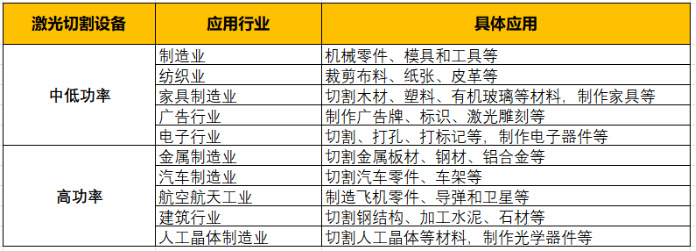 圖:中低功率和高功率激光切割設(shè)備應(yīng)用領(lǐng)域