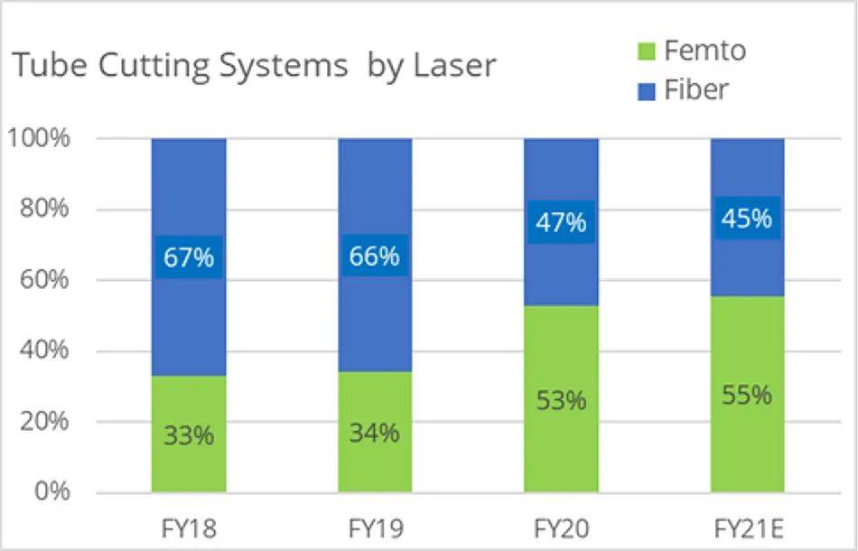 圖1.基于光纖激光器和飛秒激光器的Coherent管材切割系統(tǒng)的相對系統(tǒng)收入