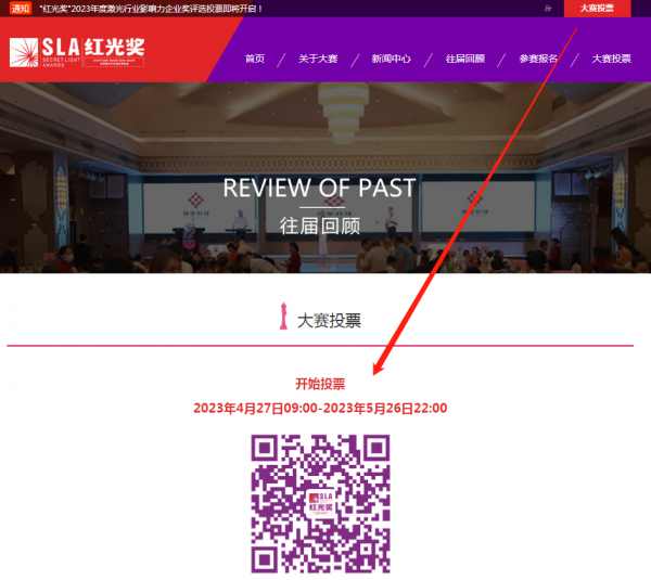 進入“紅光獎”官網: https://sla.laserfair.com,點擊“大賽投票”頁面,微信掃碼參與投票:
