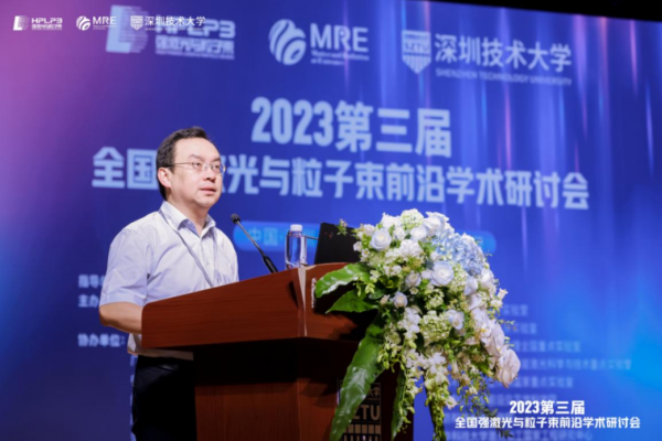 開幕式結(jié)束后,深圳技術(shù)大學(xué)工程物理學(xué)院周滄濤院長以“強(qiáng)激光驅(qū)動新型粒子源與輻射源研究”為題的大會特邀報告拉開了本次學(xué)術(shù)盛宴的序幕。接下來,中國工程物理研究院流體物理研究所石金水做了“小型醫(yī)用回旋加速器產(chǎn)業(yè)化發(fā)展”的報告,中國久遠(yuǎn)高新技術(shù)裝備有限公司楊銳做了“高能激光——摧毀無人機(jī)的利器”的報告,國防科技大學(xué)王小林做了“LD泵浦新型高功率光纖激光器”的報告,中國工程物理研究院應(yīng)用電子學(xué)研究所吳岱做了“電子直線加速器前沿應(yīng)用”的報告,北京大學(xué)喬賓做了“激光驅(qū)動的新型短脈沖中子源研究進(jìn)展”的報告,中國工程物理研究院激光聚變研究中心趙宗清做了“激光聚變熱斑特性研究進(jìn)展與挑戰(zhàn)”的報告,東華理工大學(xué)湯彬做了“加速器中子源科學(xué)裝置及其應(yīng)用展望”的報告,奔騰激光(浙江)股份有限公司吳讓大做了“高功率激光切割與焊接裝備與應(yīng)用”的報告,北京應(yīng)用物理與計算數(shù)學(xué)研究所蔡洪波做了“慣性約束聚變中的應(yīng)用基礎(chǔ)問題”的報告,西北核技術(shù)研究所楊鵬翎做了“高能激光多域測試與評估技術(shù)”的報告。11個大會特邀報告精彩紛呈,從不角度分享了我國強(qiáng)激光與粒子束領(lǐng)域的最新進(jìn)展與未來趨勢。