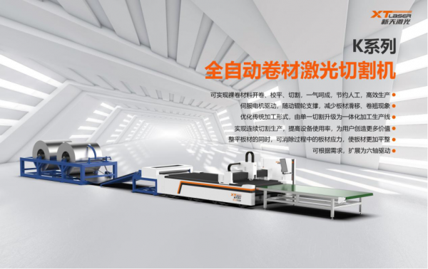 據(jù)介紹,新天激光K系列-全自動卷材激光切割機可實現(xiàn)裸卷材料開卷、校平、切割,一氣呵成,節(jié)約人工,高效生產(chǎn)。這款設(shè)備可以將金屬材料的開卷、校平、切割、下料結(jié)合為一體,從整卷材料的進料、傳輸、切割和下料全部實現(xiàn)自動化,充分保證了材料加工的高質(zhì)量、高效率和節(jié)約人力資源等特點,將智能機械與人之間相互融合,既滿足柔性的高效生產(chǎn),又可縮短企業(yè)的生產(chǎn)周期,讓企業(yè)更具市場競爭力。
