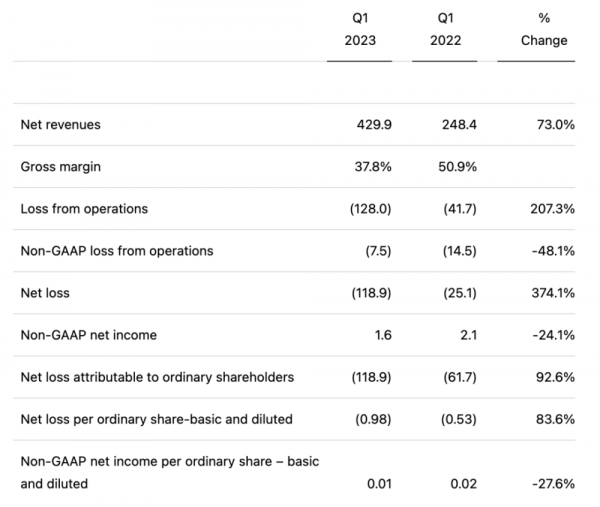 5月24日,激光雷達(dá)全球領(lǐng)導(dǎo)者禾賽科技公布了2023年第一季度的財(cái)務(wù)數(shù)據(jù)。財(cái)報(bào)顯示,公司一季度實(shí)現(xiàn)營(yíng)收4.3億元,同比增長(zhǎng)73.0%,創(chuàng)歷史新高。同期激光雷達(dá)總交付量近35000臺(tái),同比增長(zhǎng)402.9%,其中ADAS激光雷達(dá)交付量為28195臺(tái),同比實(shí)現(xiàn)大幅增長(zhǎng),禾賽科技也因此成為全球激光雷達(dá)市場(chǎng)的季度“銷冠”。