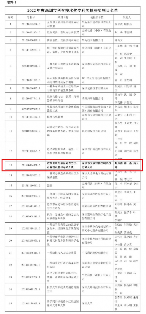 2022年企業(yè)核心專(zhuān)利之一“數(shù)控系統(tǒng)的數(shù)據(jù)處理方法、計(jì)算機(jī)設(shè)備和存儲(chǔ)介質(zhì)”因其技術(shù)的先進(jìn)性、新穎性、創(chuàng)造性以及實(shí)用性等方面的突出優(yōu)勢(shì),榮獲2022年度深圳市科學(xué)技術(shù)獎(jiǎng)專(zhuān)利獎(jiǎng)。能在高新技術(shù)企業(yè)云集的深圳取得這項(xiàng)含金量十足的獎(jiǎng)項(xiàng),充分體現(xiàn)了公司在控制技術(shù)和數(shù)控系統(tǒng)領(lǐng)域的深厚積累和創(chuàng)新實(shí)力。
