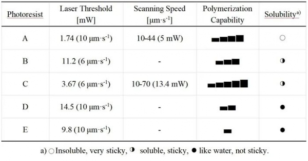 圖3 HAVE前驅(qū)體C配方雙光子聚合性能研究