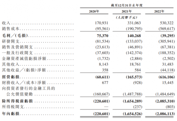 與此同時,速騰聚創(chuàng)的營收也水漲船高。2020年至2022年,公司實現(xiàn)收入分別為1.71億元、3.31億元、5.30億元。但同時虧損情況也在加劇,速騰聚創(chuàng)這三年經(jīng)調(diào)整凈虧損分別約為0.60億元、1.08億元、5.63億元。