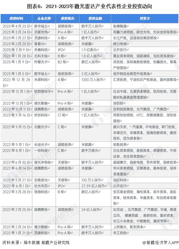 激光雷達產(chǎn)業(yè)代表性企業(yè)最新投資動向