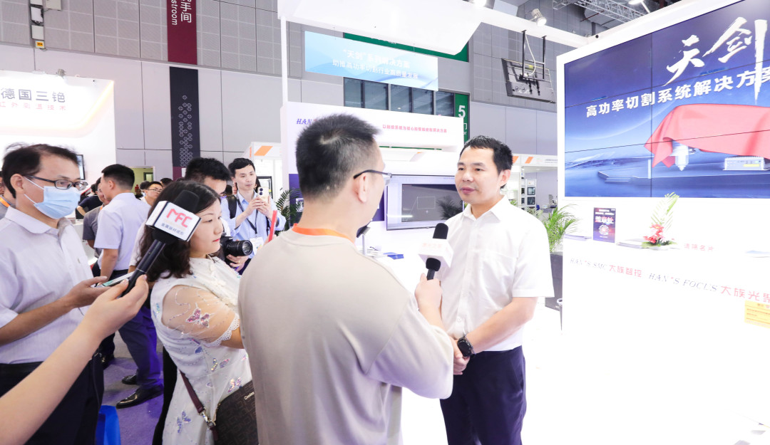 在發(fā)布會之后,大族激光副總裁陳焱、大族智控總經(jīng)理封雨鑫、大族光聚總經(jīng)理肖俊君接受行業(yè)多家權(quán)威媒體采訪。