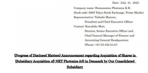 在此之前,在今年的5月2日,濱松光子2.05億歐元戰(zhàn)略收購(gòu)NKT Photonics的交易被丹麥當(dāng)局拒絕,收購(gòu)一度擱淺。