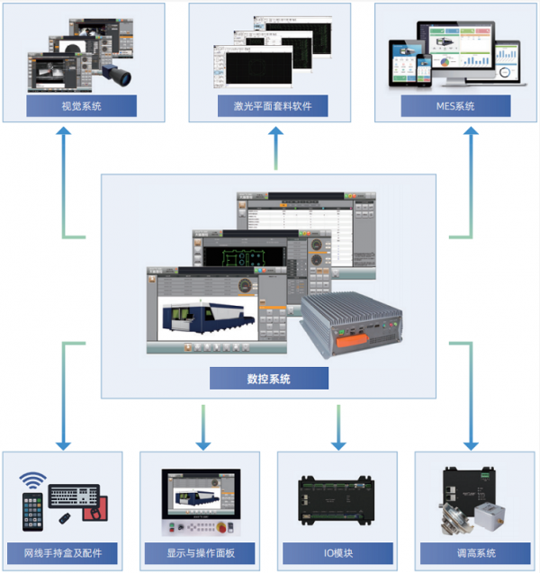 激光平面切割智能控制解決方案是以HAN’S 801激光切割數(shù)控系統(tǒng)為核心,包含EtherCAT總線IO模塊、操作與顯示單元、高性能自主研發(fā)調(diào)高控制系統(tǒng)、工業(yè)軟件以及集成視覺(jué)系統(tǒng)輔助功能的全套EtherCAT總線控制解決方案。其中,HAN’S 801激光切割數(shù)控系統(tǒng)是全新一代自主知識(shí)產(chǎn)權(quán)數(shù)控系統(tǒng),采用Intel四核高性能CPU平臺(tái),配合無(wú)風(fēng)扇密閉鰭片散熱工控機(jī),運(yùn)用高性能運(yùn)動(dòng)控制算法,集成自適應(yīng)軌跡數(shù)據(jù)處理、S型速度規(guī)劃、多軸插補(bǔ)/耦合等功能,在保證穩(wěn)定前提下極大地提升數(shù)控系統(tǒng)的性能。