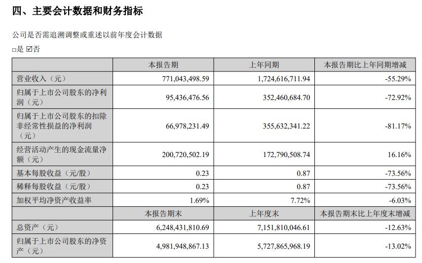 大族數(shù)控8月14日晚披露的2023年半年度報(bào)告顯示,公司上半年實(shí)現(xiàn)營(yíng)業(yè)收入7.71億元,同比下降55.29%;歸屬于上市公司股東的凈利潤(rùn)為9543.65萬(wàn)元,同比下降72.92%;歸屬于...