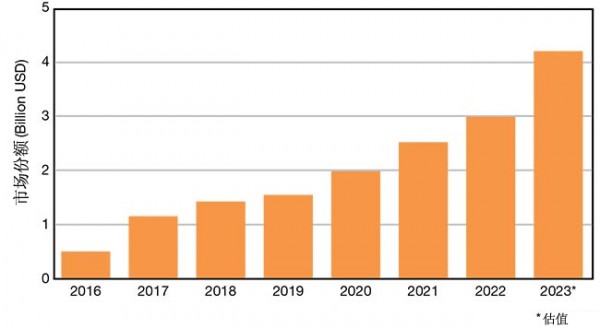 在激光增材制造方面,2022年,我國的激光增材制造市場達到23億美元,年增長率為16%,增長原因是我國出現(xiàn)了三個趨勢:增材制造工藝的工業(yè)化、新商業(yè)模式的出現(xiàn)以及激光金屬3D打印的廣泛采用。這三種趨勢在中國激光增材制造市場的增長中發(fā)揮了重要作用,預(yù)計2023年中國激光增材制造市場將達到28億美元(圖7)。