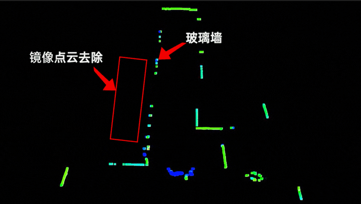激光雷達(dá)常被用于測(cè)繪利器,在建圖場(chǎng)景中有著巨大的潛力,具備測(cè)量精度高、方向性好、快速建圖等優(yōu)點(diǎn)。但也存在一定的挑戰(zhàn)與缺點(diǎn),比如:激光雷達(dá)在室內(nèi)環(huán)境中掃描時(shí),會(huì)遇到玻璃透光或反射,如果激光雷達(dá)檢測(cè)能力不強(qiáng),就會(huì)造成漏檢、錯(cuò)檢,且出現(xiàn)虛像,對(duì)環(huán)境建圖造成點(diǎn)云干擾,無法進(jìn)行有效感知。