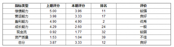 綜合來看,京華激光總體財務狀況良好,當前總評分為3.33分,在所屬的包裝印刷行業(yè)的48家公司中排名靠前。具體而言,盈利能力優(yōu)秀,償債能力、營運能力良好,成長能力一般,現(xiàn)金流、資產質量較弱。
