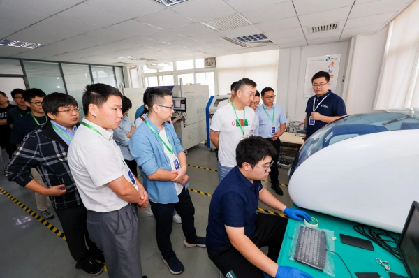 會議期間德中的工作人員熱情地帶領眾位嘉賓參觀了德中技術,包括生產制造車間、工藝應用中心、光學研發(fā)實驗室、研發(fā)和辦公區(qū)等。參觀過程中德中技術的工程師們?yōu)榇蠹椰F場演示了德中的激光精密加工設備并詳細講解了德中設備的優(yōu)點,獲得了大家的一致肯定和好評。