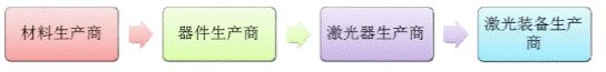 激光加工產(chǎn)業(yè)鏈從上游生產(chǎn)核心激光器的企業(yè)到生產(chǎn)各類激光加工設(shè)備的企業(yè)再到激光加工服務(wù)的企業(yè),形成了整個(gè)激光加工完整的生態(tài)鏈。一般由激光材料生產(chǎn)商、激光器件生產(chǎn)商、激光器生產(chǎn)商、激光裝備生產(chǎn)商組成。其中激光器是激光裝備的核心。
