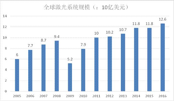 激光加工替代傳統(tǒng)加工的優(yōu)勢(shì)是加工效率的提升。根據(jù)美國(guó)BCC研究所的市場(chǎng)分析報(bào)告,工業(yè)激光市場(chǎng)一直在發(fā)展壯大,即使是在近幾年全球經(jīng)濟(jì)持續(xù)低迷時(shí)期,該市場(chǎng)還一直保持穩(wěn)健增長(zhǎng)趨勢(shì),而且不斷發(fā)展的技術(shù)還將繼續(xù)推動(dòng)這個(gè)全球市場(chǎng)發(fā)展。