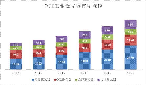 1)亞太地區(qū)是全球工業(yè)激光器最大市場(chǎng)。2017年亞太地區(qū)光纖激光器市場(chǎng)規(guī)模為7.45億美元,2020年到12.56億美元,年復(fù)合增長(zhǎng)率為19.02%。