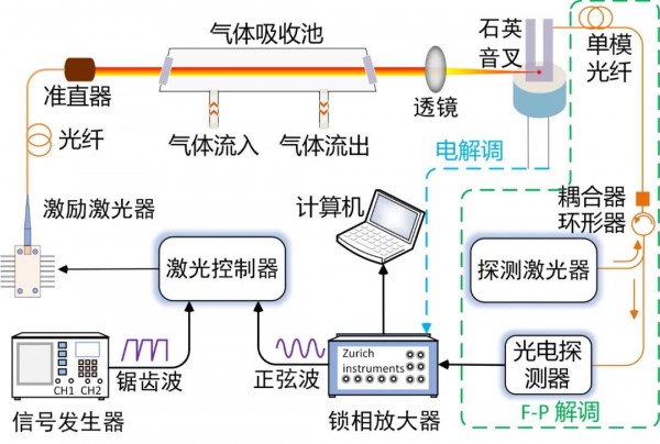 該團(tuán)隊(duì)使用法布里-珀羅(Fabry-Pérot,簡(jiǎn)稱F-P)解調(diào)代替QTF的電解調(diào)。FPI被認(rèn)為是一種安全、遠(yuǎn)程、靈敏、抗電磁干擾的微振動(dòng)測(cè)量裝置。