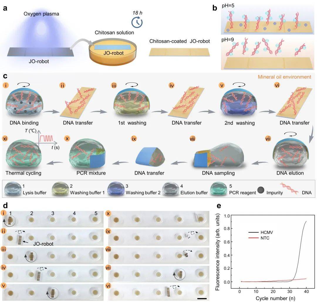 圖3.基于磁響應雙面神折紙機器人的核酸提取與純化應用