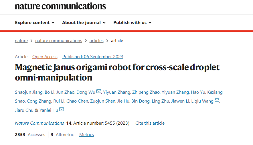 據悉,中國科大實現飛秒激光制造磁響應“雙面神折紙”機器人,該工作于9月6日以“Magnetic Janus origami robot for cross-scale droplet omni-manipulation”為題發(fā)表于Nature Communications。