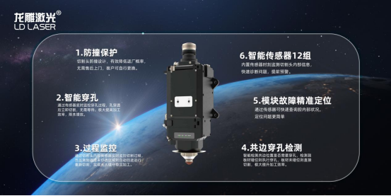 提及8萬瓦激光切割,用戶最為擔(dān)心一點的非切割頭穩(wěn)定性莫屬。龍雕激光采用全新的柏楚系統(tǒng)搭配波刺8萬瓦智能激光頭,既能實現(xiàn)對切割過程中氣壓、保護(hù)鏡/聚焦鏡污染、核心腔體溫度等環(huán)境數(shù)據(jù)實時監(jiān)測與反饋,還具備監(jiān)控切割過程(如切割過程中發(fā)現(xiàn)切不透會自動回切)、智能穿孔、智能收刀等智能化功能,足以實現(xiàn)長時間滿功率穩(wěn)定切割。