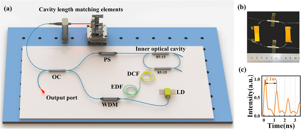 九字腔光纖光頻梳是目前技術(shù)成熟度最高的光頻梳技術(shù)之一,已被廣泛應(yīng)用于車載、星載、外場等非實驗室環(huán)境,極大推動了光頻梳相關(guān)應(yīng)用的發(fā)展。重復頻率近GHz的光頻梳在雙梳測距、光譜檢測以及天文頻標等領(lǐng)域有著重要的應(yīng)用。但是,目前九字腔光纖光頻梳的重頻一般小于250MHz,其重頻的提升仍面臨技術(shù)挑戰(zhàn)。由于非線性放大環(huán)鏡(NALM)鎖模技術(shù)需要一定長度的光纖來積累足夠的非線性相移差以啟動鎖模,傳統(tǒng)的短諧振腔方案難以適用于九字腔的結(jié)構(gòu)。