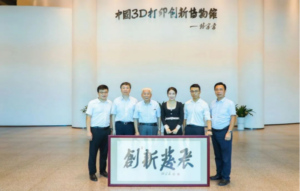 光韻達(dá)聯(lián)合創(chuàng)始人執(zhí)行董事、創(chuàng)新中心創(chuàng)辦人姚彩虹,創(chuàng)新中心聯(lián)合創(chuàng)始人、協(xié)同高科總經(jīng)理趙良兵,創(chuàng)新中心聯(lián)合創(chuàng)始人、CTO、云疆智造總經(jīng)理羅盟博士等熱情接待來(lái)訪貴賓,并就創(chuàng)新中心發(fā)展、核心技術(shù)、發(fā)展前景及目前存在的核心問(wèn)題與林老一行進(jìn)行了深入交流。早在2019年5月6日,林老出席并見證了創(chuàng)新中心的開園儀式,并為“3D打印創(chuàng)新博物館”題字,結(jié)下深厚情緣。本次到來(lái),為廣東省增材制造裝備創(chuàng)新中心和協(xié)同高科創(chuàng)始團(tuán)隊(duì)送來(lái)“創(chuàng)新發(fā)展”的勉勵(lì)題詞。光陰荏苒,林老仍保持著昂揚(yáng)的熱情不斷調(diào)研,奔赴一線,心系激光與增材制造的發(fā)展,本次到訪創(chuàng)新中心。當(dāng)初的創(chuàng)新中心現(xiàn)已獲批籌建廣東省增材制造裝備創(chuàng)新中心,核心以面向航空航天等重大工業(yè)領(lǐng)域的輕量化、高性能、數(shù)字化智能化為目標(biāo),通過(guò)連續(xù)纖維、金屬、陶瓷增材制造等多種多材料3D打印技術(shù)及裝備產(chǎn)品研發(fā)、應(yīng)用,致力于推動(dòng)產(chǎn)業(yè)化進(jìn)程與創(chuàng)新發(fā)展。林老一行走訪連續(xù)纖維實(shí)驗(yàn)室、陶瓷實(shí)驗(yàn)室以及金屬3D打印生產(chǎn)車間,對(duì)創(chuàng)新中心團(tuán)隊(duì)掌握自主知識(shí)產(chǎn)權(quán),突破“卡脖子”技術(shù),實(shí)現(xiàn)特種裝備的國(guó)產(chǎn)化和產(chǎn)業(yè)化接觸給予高度評(píng)價(jià)和肯定,并寄厚望于廣東省增材制造裝備創(chuàng)新中心的籌建和發(fā)展。