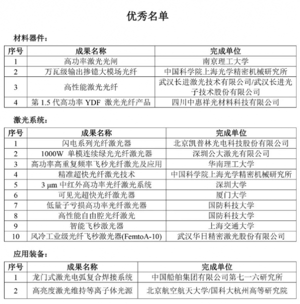 10月31日,中國光學(xué)工程學(xué)會公布“光纖激光五年優(yōu)秀成果展”入選結(jié)果。經(jīng)過學(xué)會組織專家的函評與會評,最終有16項入選優(yōu)秀,42項獲提名。