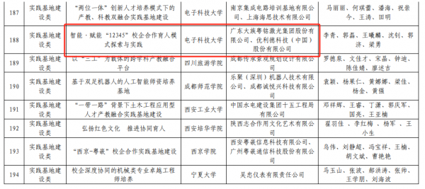 近日,中國(guó)高等教育學(xué)會(huì)正式公布2022年度中國(guó)高等教育學(xué)會(huì)“校企合作 雙百計(jì)劃”典型案例名單。由廣東大族粵銘激光集團(tuán)股份有限公司與電子科技大學(xué)及優(yōu)利德科技(中國(guó))股份有限公司合作申報(bào)的《智能?賦能“12345”校企合作育人模式探索與實(shí)踐》案例,入選2022年度中國(guó)高等教育學(xué)會(huì)“校企合作 雙百計(jì)劃”典型案例。