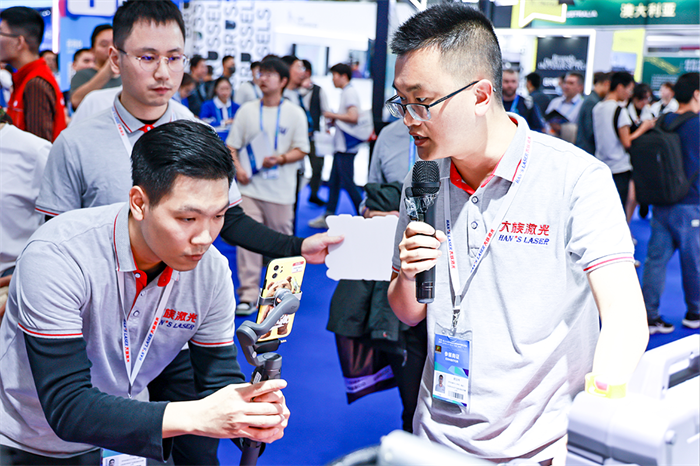 在智慧與高效的交匯之中,圍繞特定主題“用激光改變生活”,設(shè)備動(dòng)態(tài)打造沉浸氛圍,展現(xiàn)領(lǐng)先技術(shù)實(shí)力與優(yōu)勢,同時(shí)再度定義激光行業(yè)標(biāo)桿。除了與展示精品近距離接觸外,裸眼3D大屏增添專業(yè)與科技感,激光科普視頻、現(xiàn)場直播講解以及自助打印環(huán)節(jié)等也極大提升觀眾視覺享受和參與感。大族激光以展會(huì)為契機(jī),與國內(nèi)外各地客戶進(jìn)行深入交流,致力達(dá)成后續(xù)合作意向。