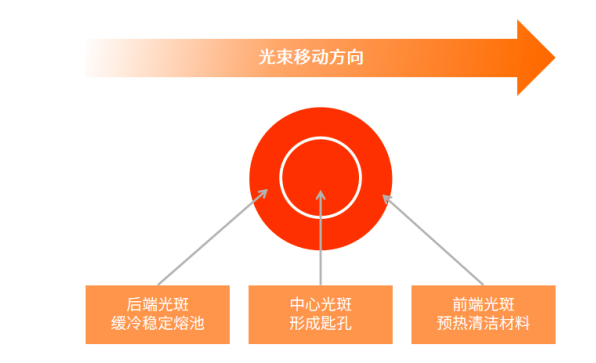 寶辰鑫雙光束(環(huán)形光斑)激光器,采用環(huán)形光斑設(shè)計,在進行動力電池外殼焊接時,可利用光斑較小的內(nèi)環(huán)的高功率密度光斑作用于工件,生成匙孔,獲得足夠的焊接熔深;利用外環(huán)對焊接過程中的熔池提供更多能量以增大焊縫寬度,并延長匙孔閉合時間,幫助熔池氣體逸出,從而降低焊縫氣孔率。