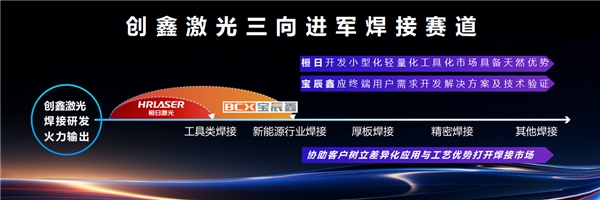 桓日和寶辰鑫相當(dāng)于創(chuàng)鑫焊接架構(gòu)中的“動(dòng)力前驅(qū)”,與創(chuàng)鑫大研發(fā)“三位一體”,迅速構(gòu)建起創(chuàng)鑫焊接全新技術(shù)框架。創(chuàng)鑫依托不斷迭代的焊接技術(shù)框架平臺(tái),結(jié)合激光焊接設(shè)備企業(yè)對用戶的理解,協(xié)助客戶去開拓更多更新的領(lǐng)域。這就是創(chuàng)鑫戰(zhàn)略布局焊接市場的技術(shù)演進(jìn)思路:三向進(jìn)軍焊接賽道,互為倚角,各自促進(jìn),實(shí)現(xiàn)共贏。