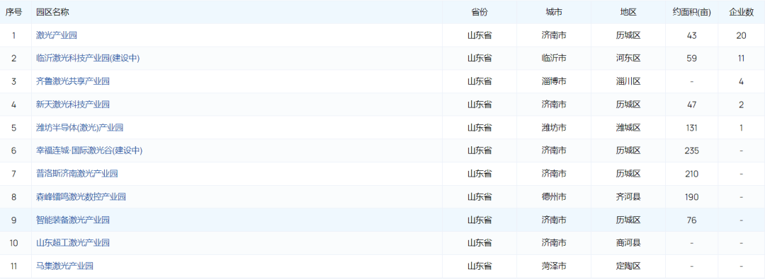山東省激光產業(yè)園區(qū),濟南市有6個