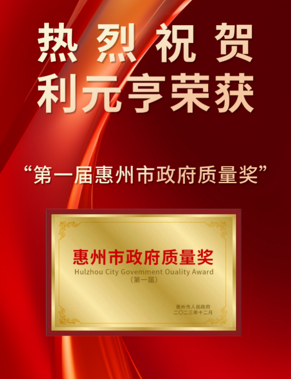 利元亨榮獲惠州市第一屆政府質(zhì)量獎(jiǎng)