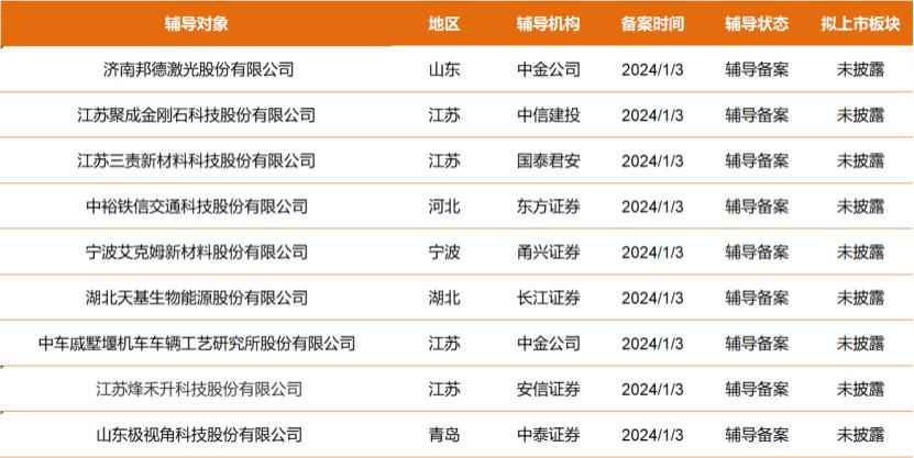 邦德激光、聚成科技等9家公司啟動A股IPO輔導