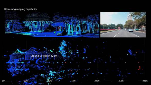 M3基于M平臺(tái)的二維掃描技術(shù)打造,是全球首款通過940nm激光技術(shù)實(shí)現(xiàn)300m@10%反射率測(cè)距能力的超遠(yuǎn)距激光雷達(dá),且具有0.05°x0.05°角分辨率的超高清三維成像能力。