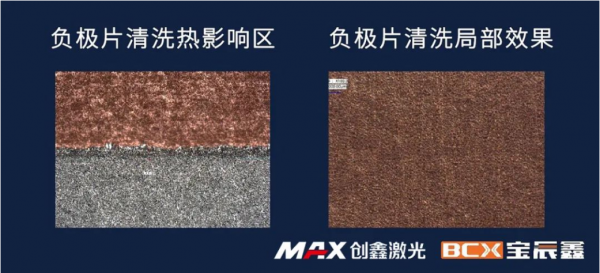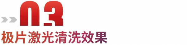 寶辰鑫激光清洗應(yīng)用解決方案具備綠色環(huán)保、潔凈度高、無耗材、成本低等優(yōu)勢(shì),清洗效果好,(清洗區(qū)域殘留物面積<1%,清洗潔凈度>99%);清洗效率高,(負(fù)極極片清洗效率0.75s,正極極片清洗效率1.4s)。電池極片經(jīng)過激光清洗后,表面無劃痕、無毛刺,動(dòng)力電池的安全性能及使用壽命得到有效保障。