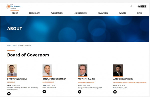 沈平教授擔(dān)任電氣與電子工程師學(xué)會光子學(xué)協(xié)會第37任全球主席