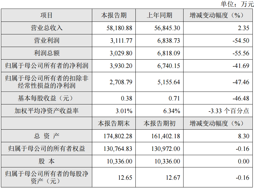 報(bào)告期末,公司總資產(chǎn)174,802.28萬(wàn)元,同比增長(zhǎng)8.30%;歸屬于母公司的所有者權(quán)益130,764.83萬(wàn)元,同比下降0.16%。