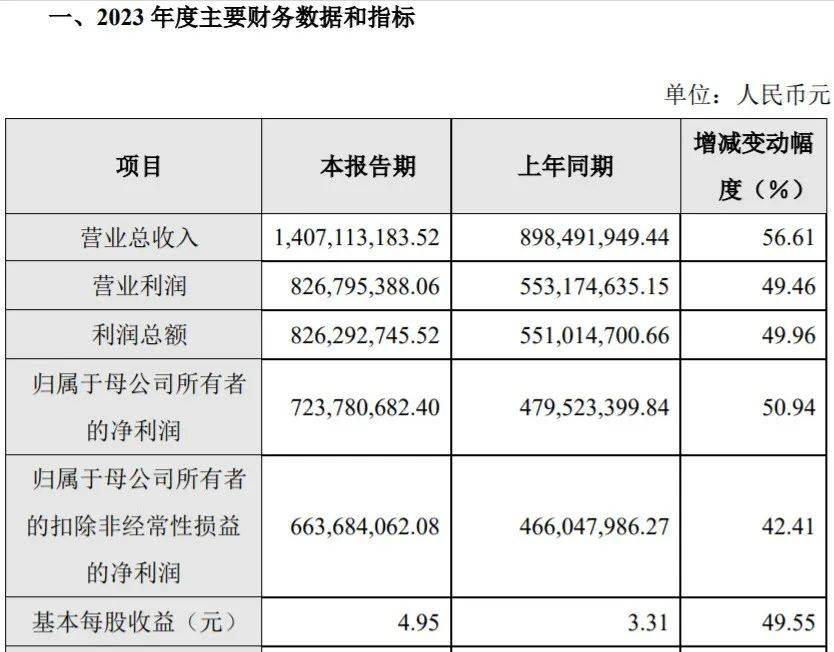 2月24日柏楚電子發(fā)布業(yè)績(jī)快報(bào)公告。公告稱(chēng),2023 年度,公司實(shí)現(xiàn)營(yíng)業(yè)收入140,711.32 萬(wàn)元,較上年同期增長(zhǎng) 56.61%;實(shí)現(xiàn)營(yíng)業(yè)利潤(rùn) 82,679.54 萬(wàn)元,較上年同期增長(zhǎng) 49.46%; 實(shí)現(xiàn)利潤(rùn)總額 82,629.27萬(wàn)元,較上年同期增長(zhǎng) 49.96%;實(shí)現(xiàn)歸屬于母公司所有者的凈利潤(rùn) 72.378.07 萬(wàn)元,較上年同期增長(zhǎng) 50.94%;實(shí)現(xiàn)歸屬于母公司所有者的扣除非經(jīng)常性損益的凈利潤(rùn) 66,368.41 萬(wàn)元,較上年同期增長(zhǎng) 42.41%。