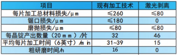 1)激光剝離技術可充分利用激光加工設備的易集成易自動化特性,將多個晶錠的研磨、改質切 割、剝離工序并行實施,從而提高加工效率。