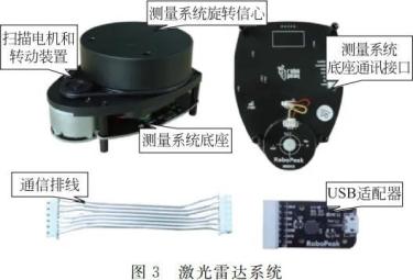 激光雷達以及其各個部件構(gòu)成如圖 3 所示,激光雷達安置在移動平臺上,整個測量系統(tǒng)如圖 4 所示。驅(qū)動小車將激光雷達輸送到測量位置后,啟動雷達掃描,對目標點進行 360° 全方位旋轉(zhuǎn)掃描開始測量。