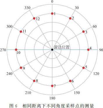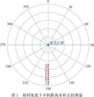 測量系統(tǒng)定位是否準確是由其對所測點 M 到激光雷達的距離即以激光雷達為圓心的半徑 r 和方位角 θ 的測量的準確性共同決定的。為了檢驗測量系統(tǒng)測距和方位角測量的準確性,在一平面上繪制極坐標,對測量系統(tǒng)分別進行測距和測角兩種情況驗證。