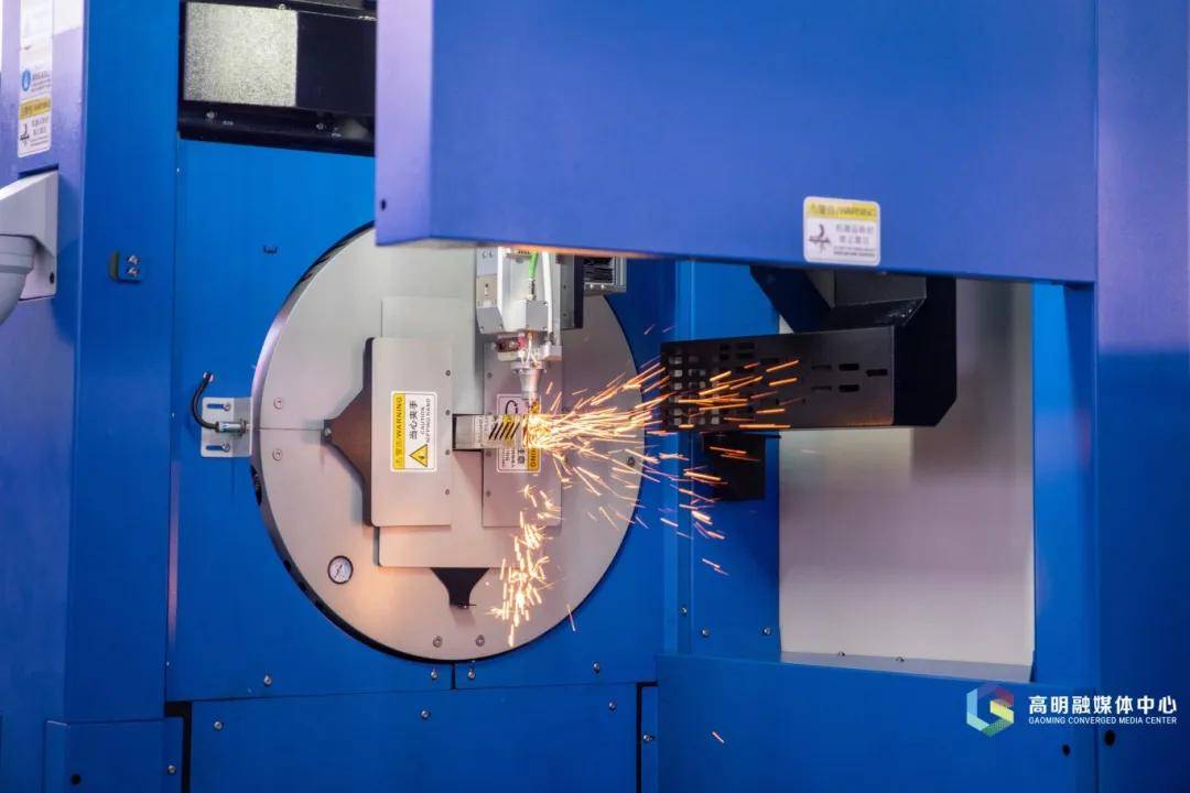 匯百盛激光的激光智能設備正在進行切割作業(yè)。洪海攝