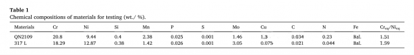 在實(shí)際應(yīng)用中,QN2109的焊接要求嚴(yán)格控制冷卻過程,以避免在靈敏度提高的溫度范圍內(nèi)停留,并減少導(dǎo)致σ相的共晶反應(yīng)的發(fā)生。同樣,焊接317 L時(shí)的熱輸入應(yīng)精確調(diào)節(jié),以防止碳化物沉淀。或者,在焊接前對(duì)鋼板進(jìn)行固溶處理可以降低碳化物的濃度并提高焊接接頭的抗點(diǎn)蝕性。