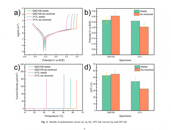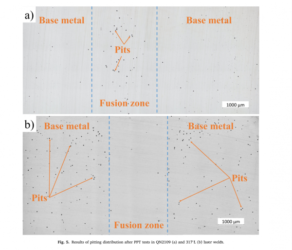 本研究調(diào)查了奧氏體不銹鋼QN2109和317 L激光焊接接頭點(diǎn)蝕行為的差異。從點(diǎn)蝕萌生的角度揭示了不同的點(diǎn)蝕行為。得出以下結(jié)論: